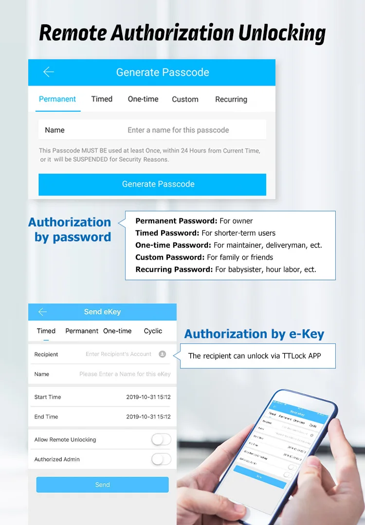 ✅ Send temporary passcodes / eKeys remotely (app feature)