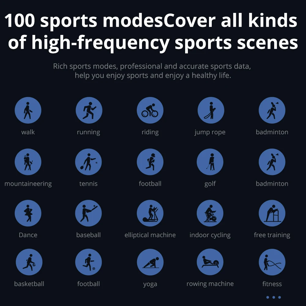 • 24/7 heart-rate monitoring, SpO₂ (blood oxygen), sleep tracking (stages), and sedentary/drink-water reminders.