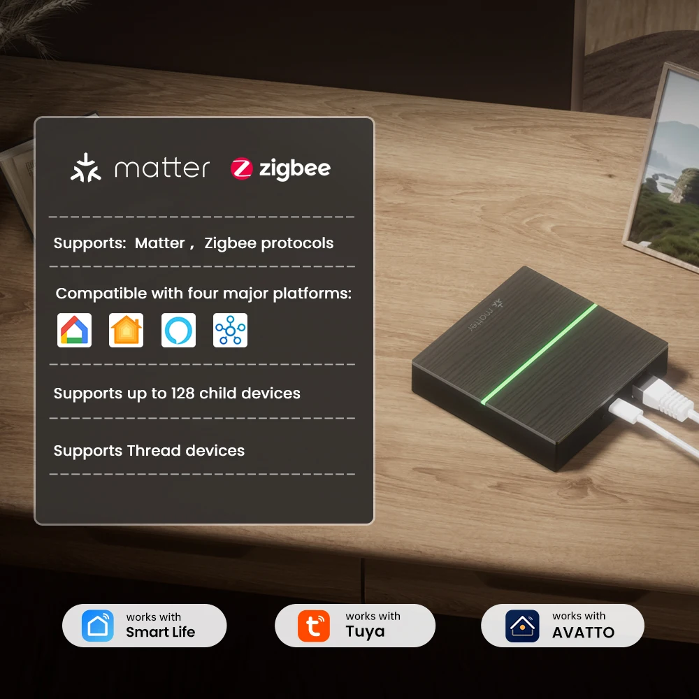AVATTO Matter ZigBee Wired Gateway Hub – Smart Home Bridge for HomeKit, Alexa & Google